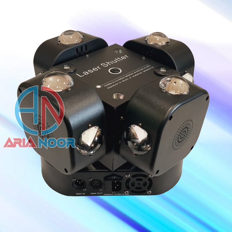 این مدل رقص نور دارای 4 عدد بازوی چرخان ال ای دی فول کالر (هر بازو 4 ال ای دی) می باشد